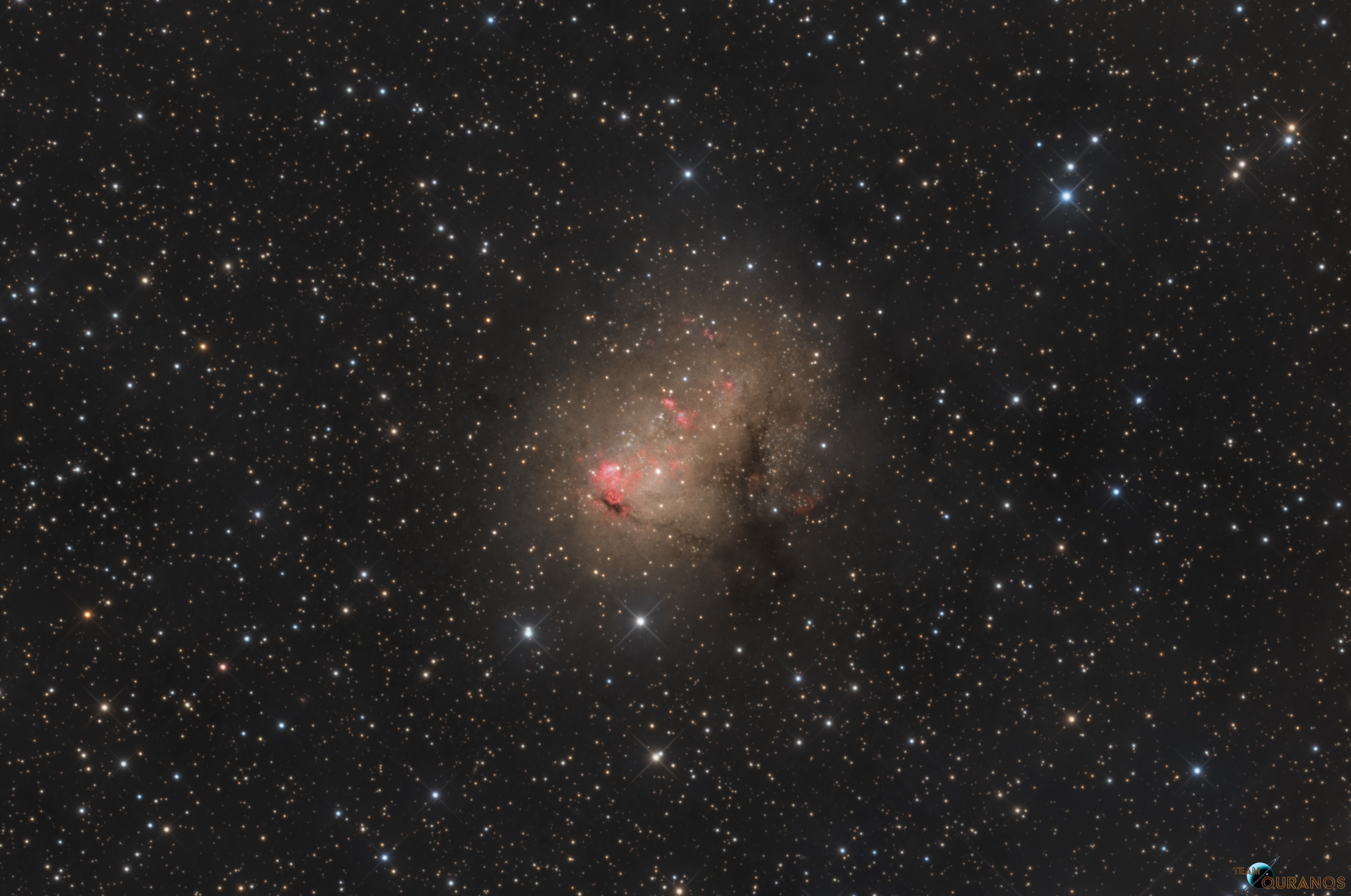 On cherchera ici en vain la symétrie apaisante d’une belle spirale. IC 10 est une galaxie naine irrégulière, distante d’environ 2,2 millions d’années-lumière. Elle ressemble davantage au Petit Nuage de Magellan qu’à M31. Mais ne vous fiez pas à son apparence désordonnée : c’est une usine à gaz en surrégime.